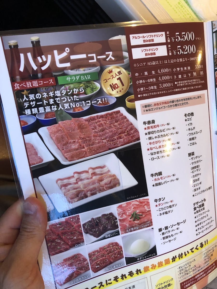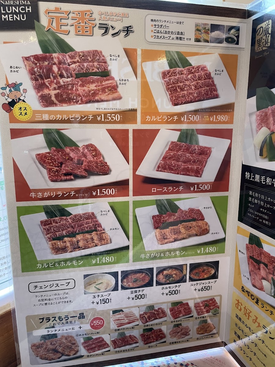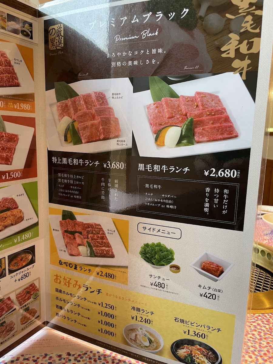 The menu offers a variety of options highlighting the quality of the ingredients. One standout is the W Kalbi Set priced at ¥2,600, featuring tender beef, rice, kimchi, seaweed soup, and a salad bar with unlimited refills. Diners rave about the affordability despite the high-quality meat, making it a go-to spot for locals and tourists alike.